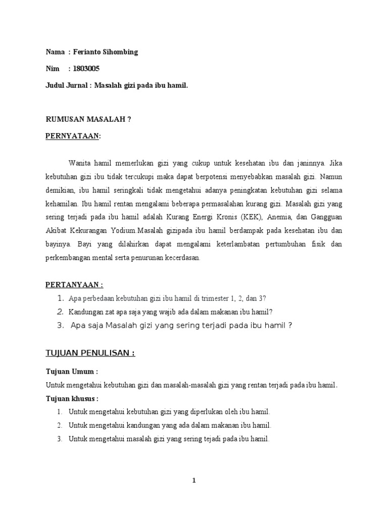 Review Jurnal Masalah Gizi Pada Ibu Hamil Pdf