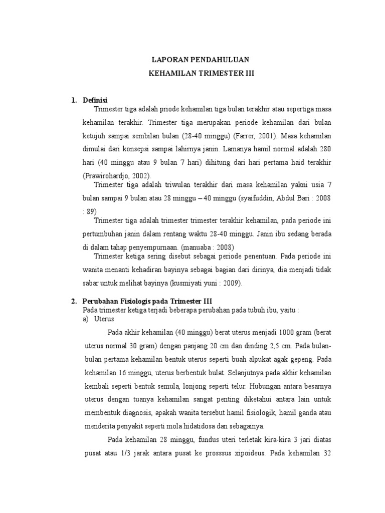 Laporan Pendahuluan Kehamilan Trimester 3 Pdf