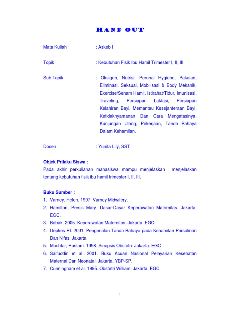 Kebutuhan Fisik Ibu Hamil Trimester I Pdf